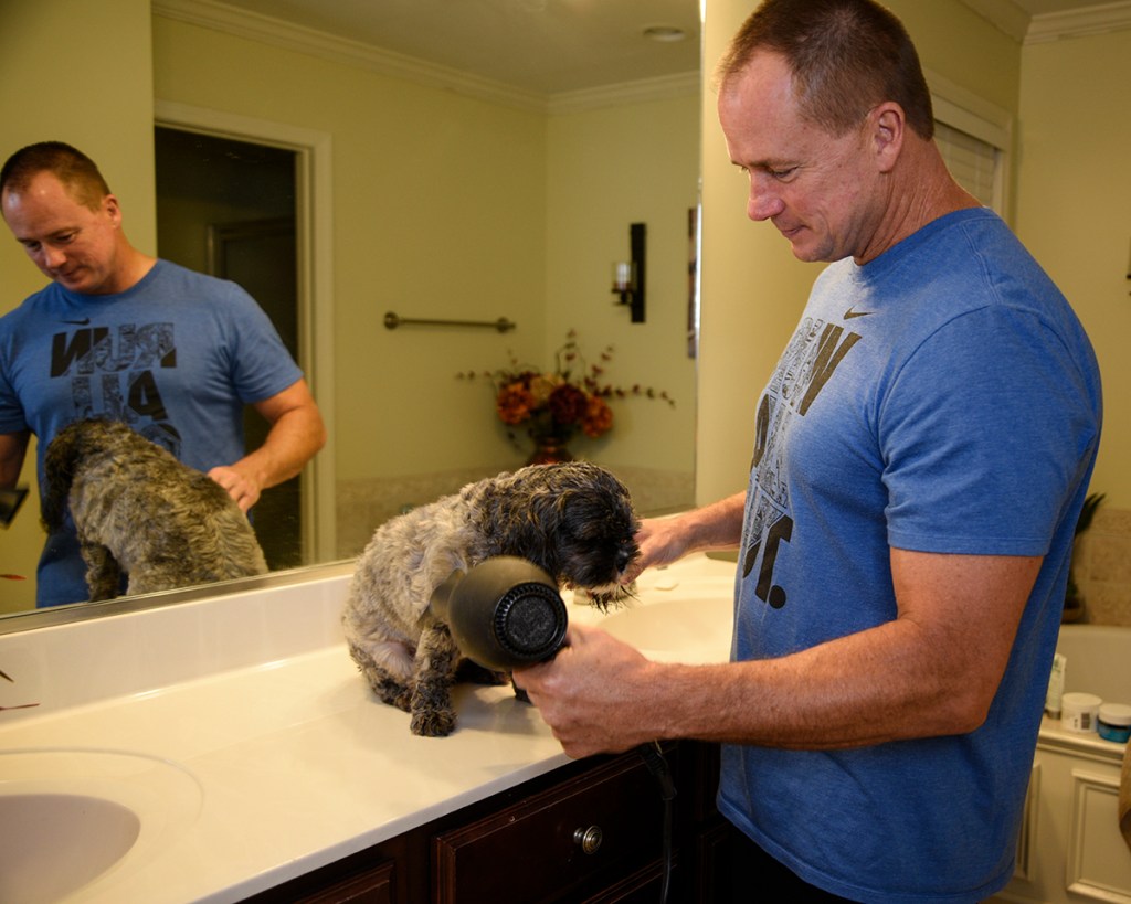 Beverly Hull drinks coffee and checks her phone on her porch in Clemmons, NC on October 6, 2019. (photo by Janis M. Grainger) people we love or care about