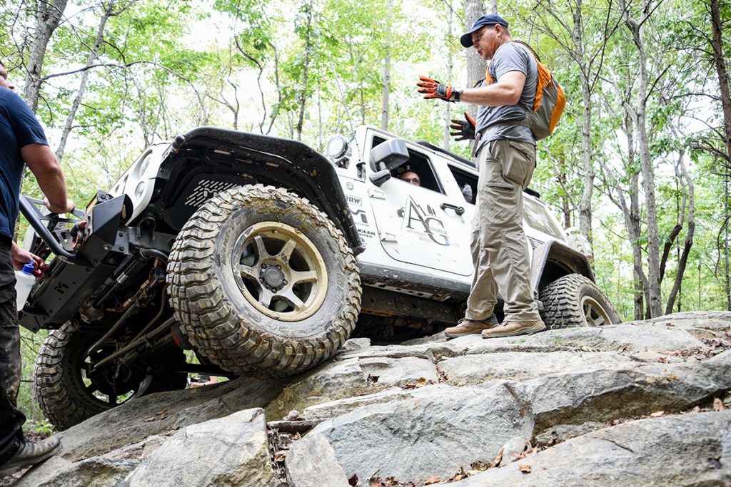 Ismael “Izzy” Sanchez directing driver Tommy Gray during the 2019 Appalachian Rendezvous in the Uwharrie National Forest in Troy, NC on September 13, 2019. (photo by Janis M. Grainger)