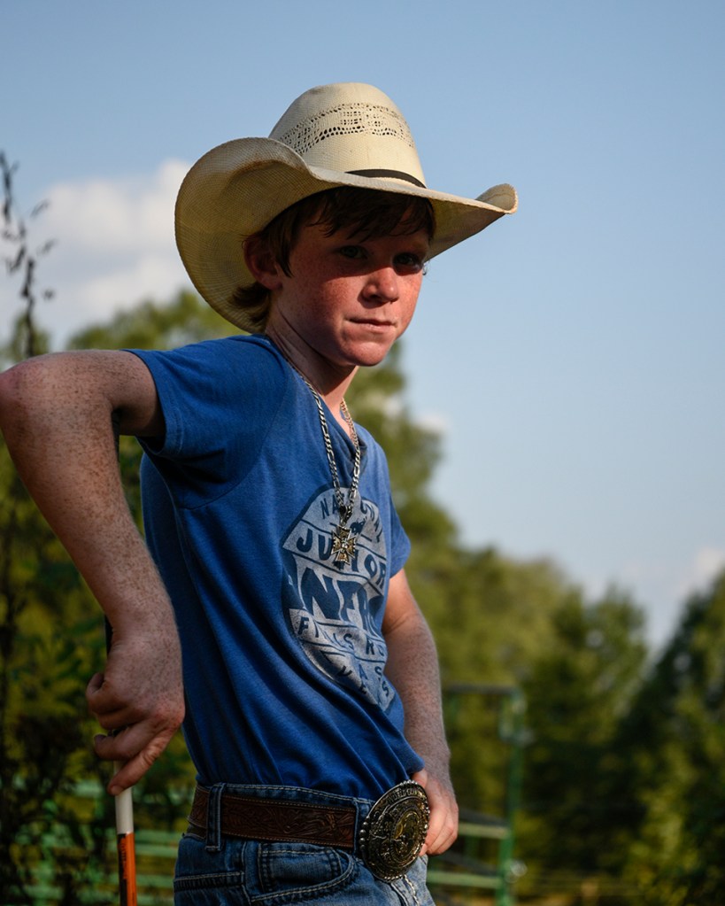 09-11-2019 Image Reply Clay Guiton,13, takes a break after doing chores on his family’s farm in Cherryville, NC on September 11, 2019. (photo by Janis M. Grainger)